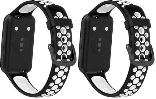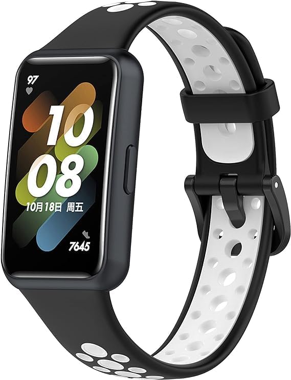 Next store - سوار رياضي من نيكست ستور متوافق مع هواوي باند 7 / هونر باند 7، سوار سيليكون خفيف الوزن مقاوم للعرق (اسود وابيض) (عبوة من قطعتين)