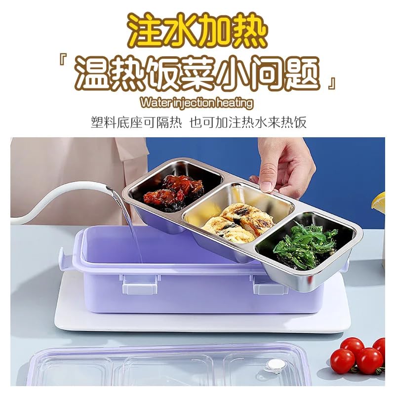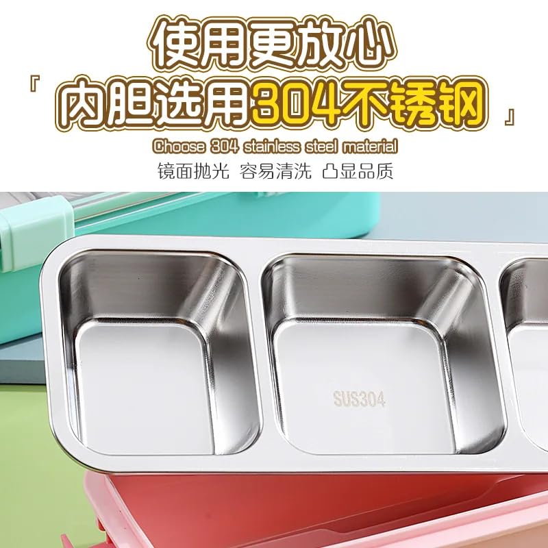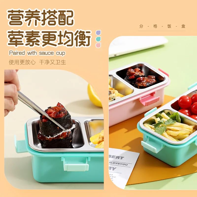 - [تصميم عملي بثلاث فتحات:] يتميز اللانش بوكس بتقسيم داخلي ذكي بثلاث فتحات تساعد في حفظ الأطعمة منفصلة وطازجة لفترات طويلة.