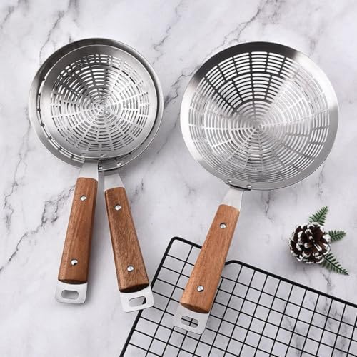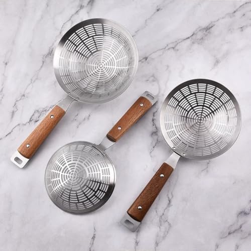 Next store - مصفاة قلي وتصفية ستانلس ستيل بمقبض خشبي عازل للحرارة، مغرفة شبكية ( مقاس كبير) للزيت والباستا، أداة مطبخ احترافية من Next Store