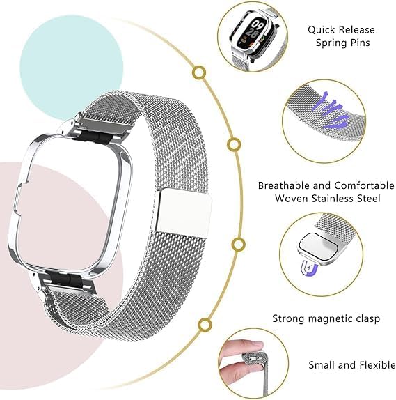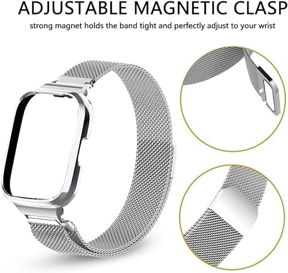 Next store - سوار ساعة معدني من الفولاذ المقاوم للصدأ من Next Store، سوار معصم مغناطيسي قابل للتعديل وجيد التهوية متوافق مع ساعة شاومي ريدمي 3