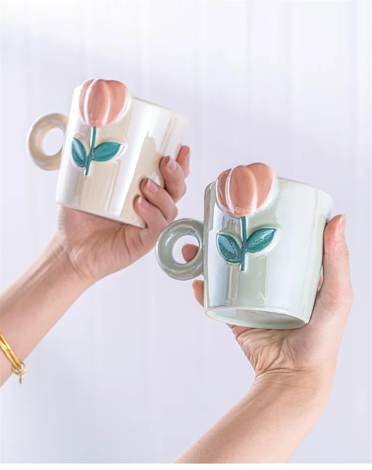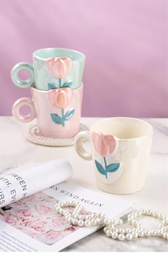 - [تصميم أنثوي أنيق:] مج سيراميك مزخرف بنقش بارز أنيق يضفي لمسة جمالية رائعة على طاولة المشروبات. تصميمه العصري واللطيف يجعله مناسباً للبنات ومحبي التفاصيل المميزة. يمكن استخدامه يومياً كقطعة عملية وديكورية في آن واحد، ليمنحك تجربة فريدة تضيف لمسة من الرقي على كل رشفة.