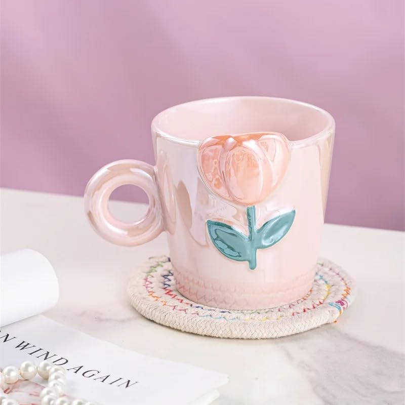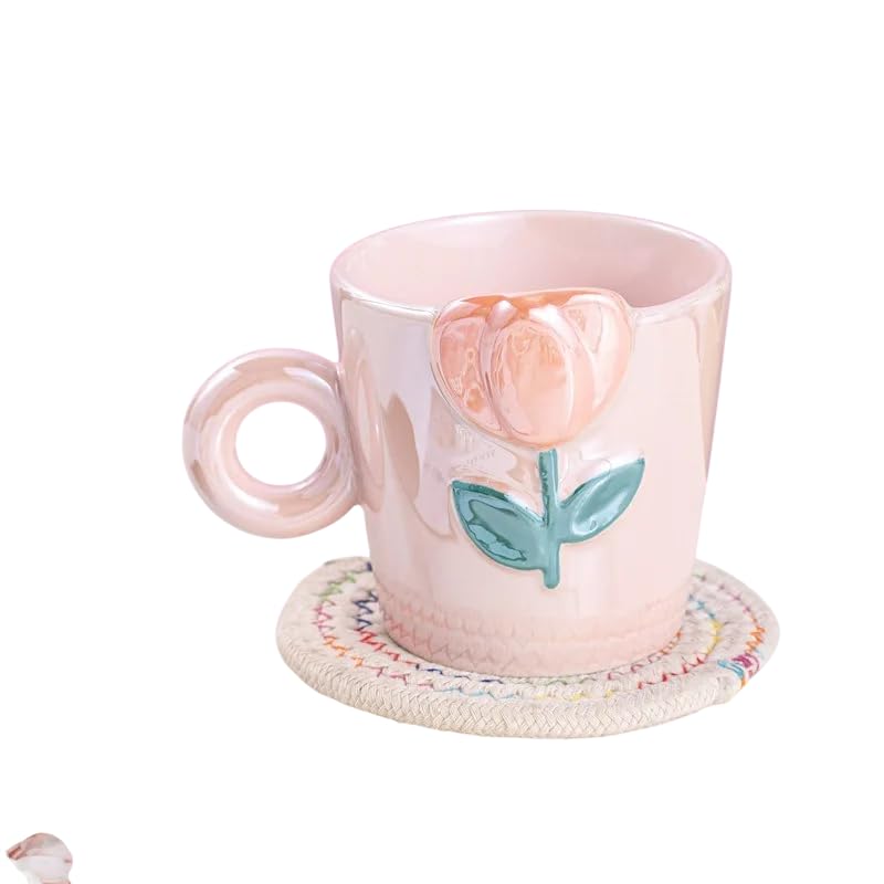 Next store - مج سيراميك بنقش بارز أنيق للبنات من Next Store ، تصميم عصري ولطيف يصلح للقهوة والحليب والشاي، سعة عملية، هدية مثالية وعملية (بينك)
