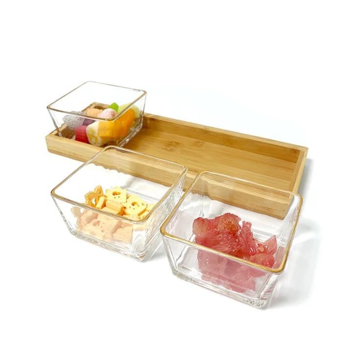 - [عدد 3 بولات زجاج عملية:] يأتي الطقم بثلاثة أوعية زجاجية منفصلة لتقديم أنواع متعددة من الأطعمة في وقت واحد بطريقة مرتبة ومنسقة.