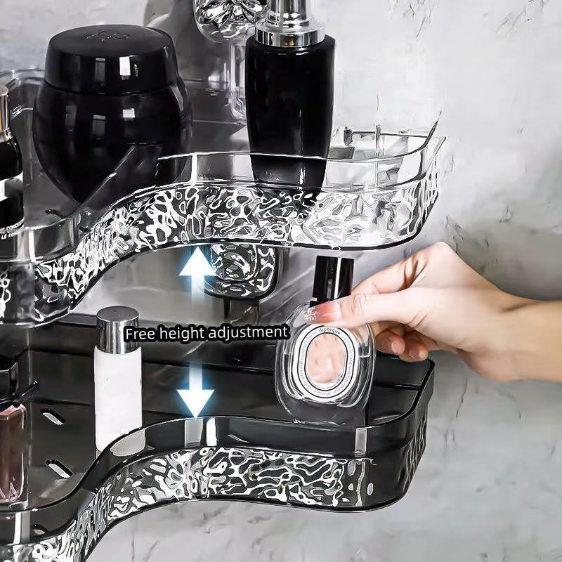 - [متانة عالية وقدرة تحمل] : رغم مظهره الرقيق والأنيق، إلا أن الهيكل الهندسي السميك يوفر قوة تحمل استثنائية تجعله قادراً على حمل عبوات الشامبو الكبيرة، وكريمات العناية، ومستحضرات التجميل الثقيلة بثبات تام ودون أي انحناء، حيث تم تصميمه بحواف ناعمة وآمنة تمنع خدش اليدين، مع قاعدة صلبة تضمن استقرار الأغراض عليها وعدم انزلاقها، ليجمع بين الأناقة المفرطة والقوة العملية التي تحتاجها يومياً.