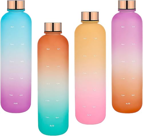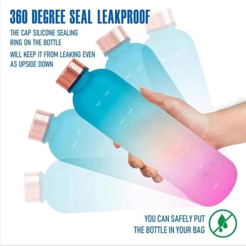 Next store - زجاجة مياه فريدة بسعة 1000 مل من Next store مع علامات زمنية تحفيزية، مثالية للسفر، الرياضة، المكتب، اليوجا، المدرسة، وصالة الألعاب الرياضية (بينك/اورانج)