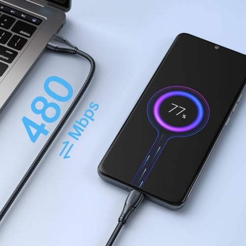 - نقل بيانات عالي السرعة: يوفر الكابل سرعة نقل بيانات تصل إلى 480Mbps، مما يتيح لك نقل الملفات الكبيرة بسلاسة وسرعة عالية، مما يجعل مزامنة البيانات مع الأجهزة الأخرى عملية سهلة وفعالة.