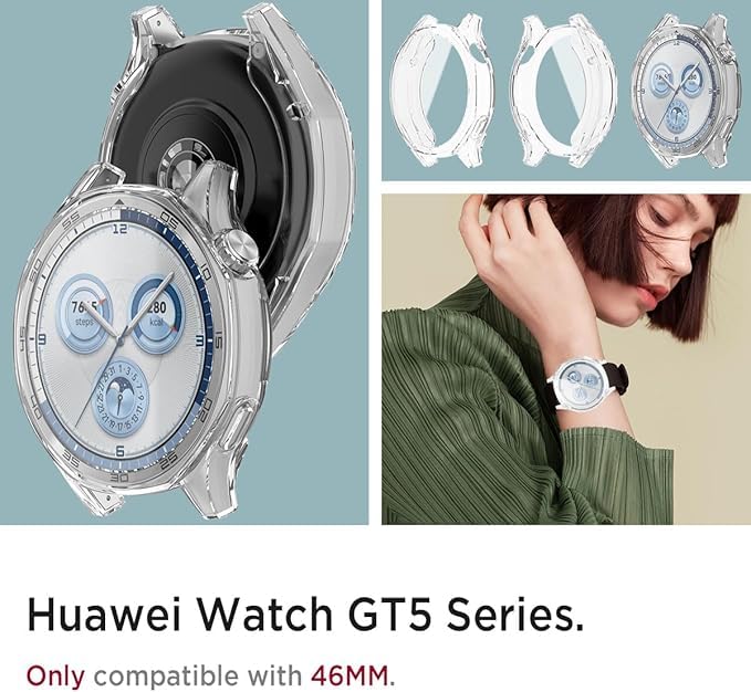 Next store - جراب ساعة من نيكست ستور متوافق مع ساعة هواوي GT5 مقاس 46 ملم، غطاء حماية رفيع من البولي يوريثين الحراري بتغطية كاملة الحواف (شفاف)