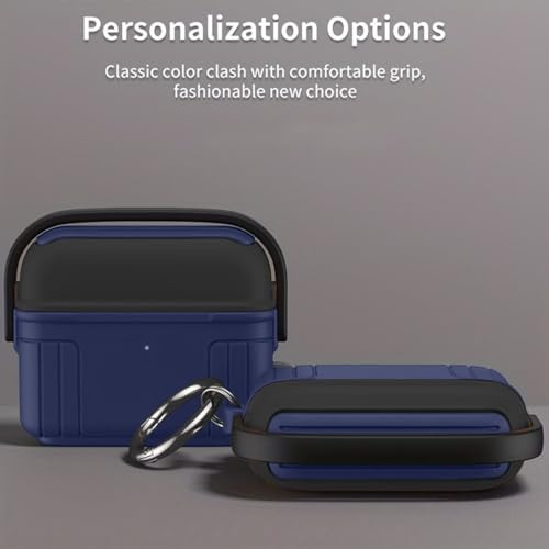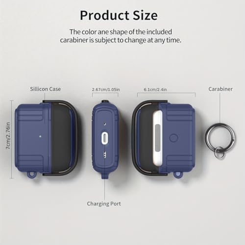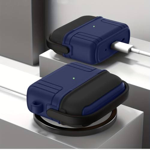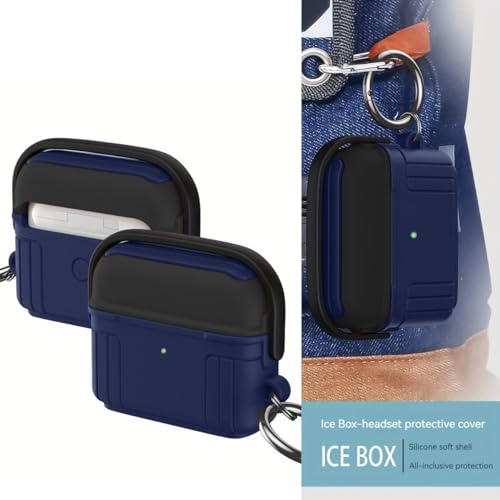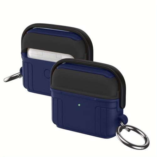 Next store - جراب مقاوم للماء لسماعات ايربودز برو الجيل الثاني من نيكست ستور حماية السيليكون الممتاز 2 يدعم الشحن اللاسلكي مضاد للصدمات بحلقة تثبيت وضوء LED مرئي أزرق - أسود