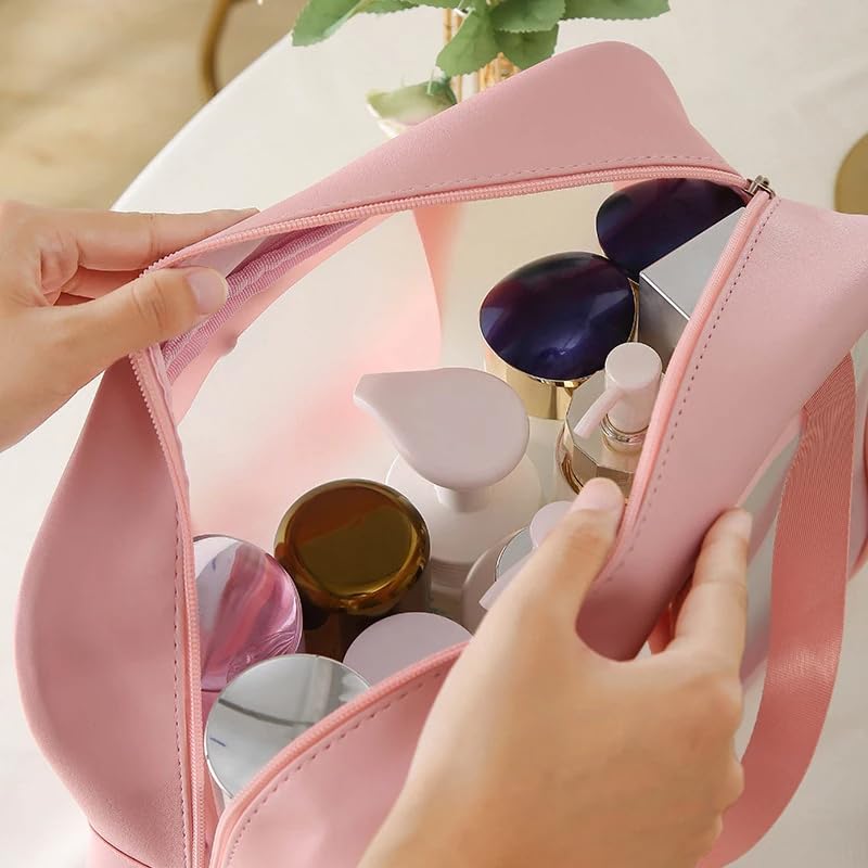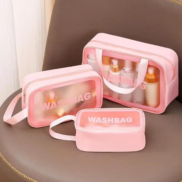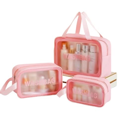 Next store - مجموعة حقائب مكياج شفافة مقاومة للماء من Next Store ، منظمات سفر عملية للعناية الشخصية ، مثالية لتخزين مستحضرات التجميل ، أدوات الزينة ، فرش المكياج والاكسسوارات بأناقة أثناء التنقل (بينك)