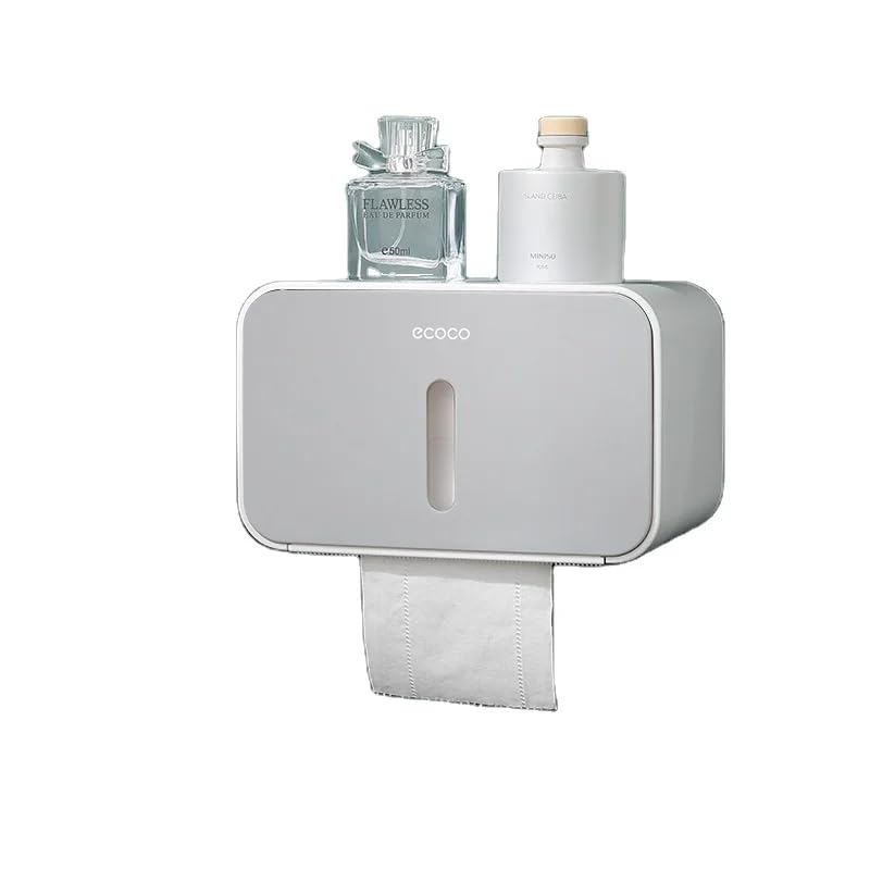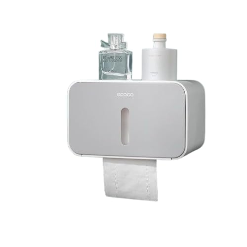Next store - علبة مناديل بلاستيكية جدارية مقاومة للماء من Next store – منظم ورق حمام مع رف تخزين – تصميم عصري للمنازل والفنادق لحفظ المناديل بشكل أنيق ومرتب (رمادي)