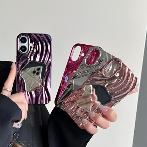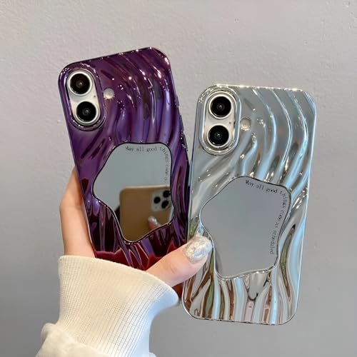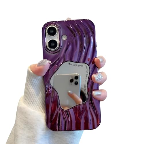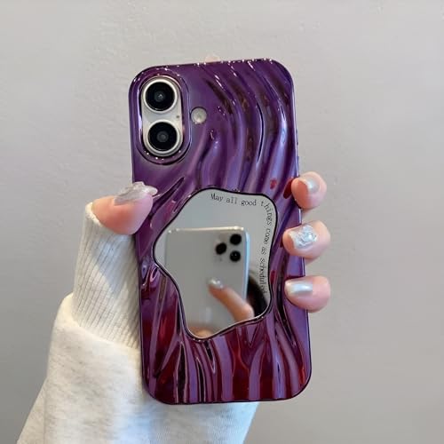 Next store - جراب حماية متوافق مع آيفون 16 بلس من مادة بولي يوريثين حراري عالية الجودة مع مراية مكياج مموجة مدمجة ومقاومة للماء، مضاد للخدش من نيكست ستور بلون أرجواني