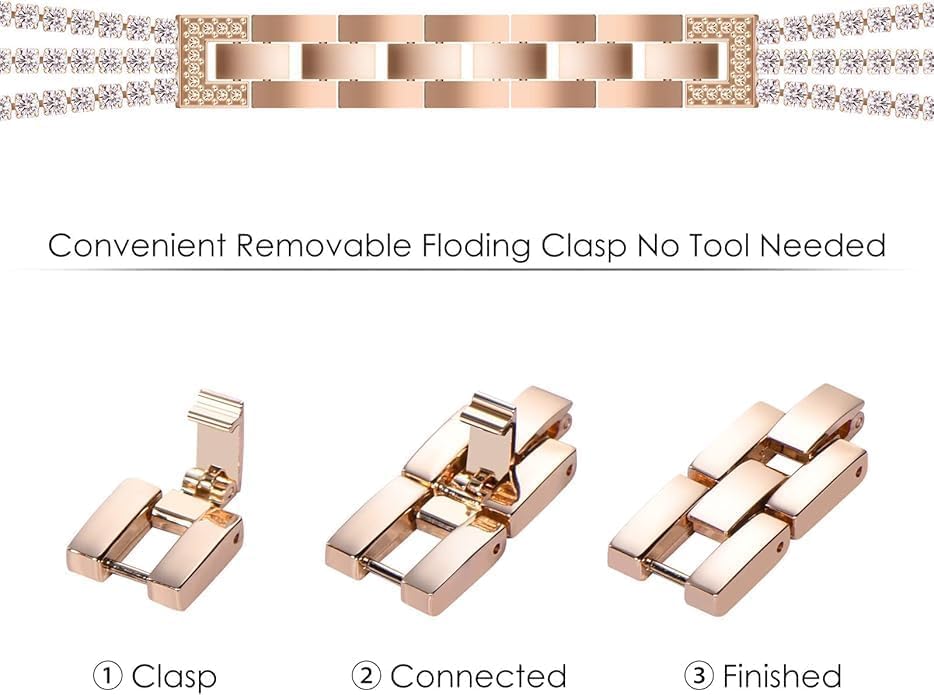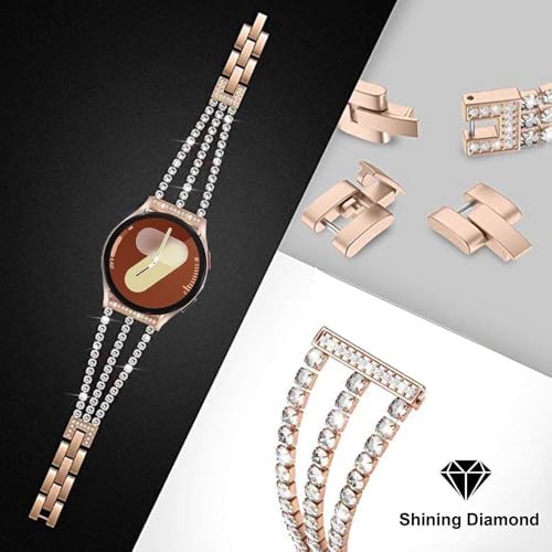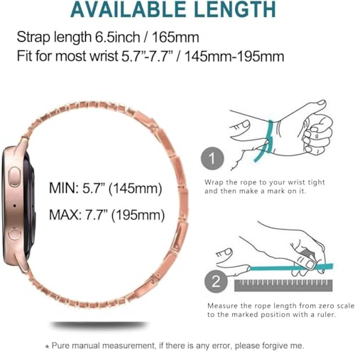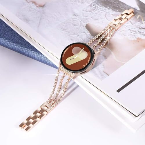 Next store - سوار نسائي معدني لامع من Next Store مزين بحبات ألماس صناعي – مقاس 20 مم –متوافق مع ساعة سامسونج 4/5/5 برو/S2 كلاسيك/اكتيف 2 40 ملم و45 ملم/امازفيت جي تي اس 3/جي تي اس 4