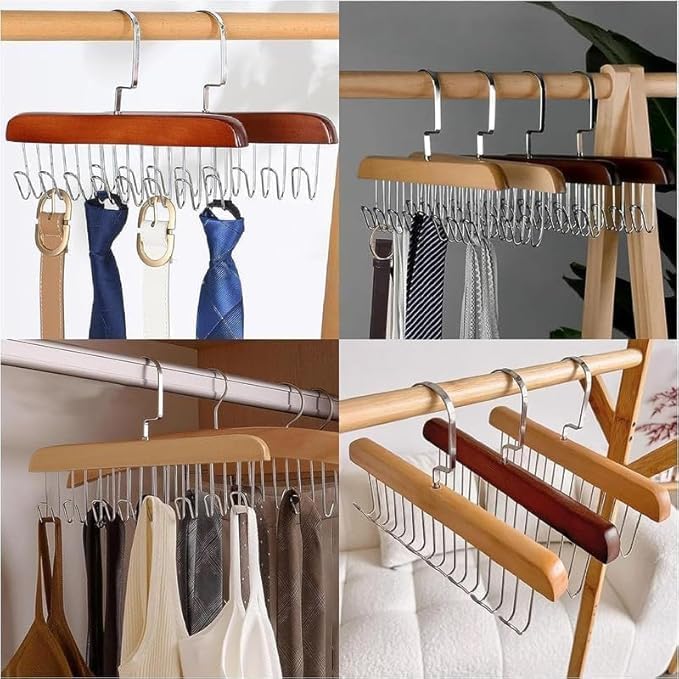 - [مواد متينة وطويلة الأمد]:: الخشب الطبيعي المستخدم في هذه الشماعات مقاوم للتلف ويحمل الوزن الثقيل دون الانحناء، مما يجعلها مثالية للاستخدام اليومي.