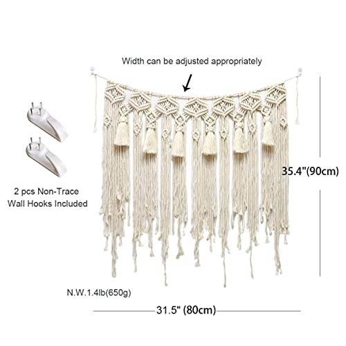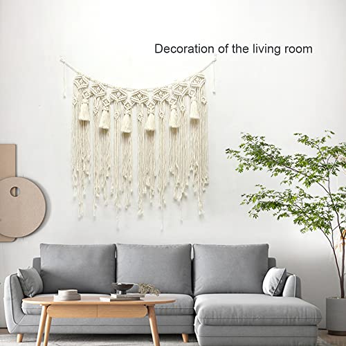 Moylor - بساط مكرمية كبير مصنوع يدويا من نسيج محبوك بشراشيب بنمط بوهو للتعليق على الحائط لديكور المنزل يصلح كهدية مقاس 31.5 بوصة × 35.4 بيج
