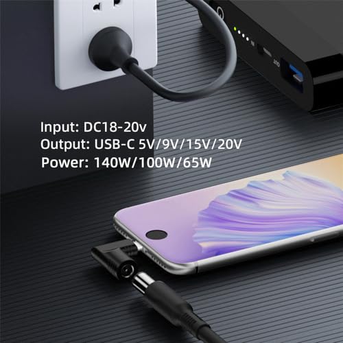 - الطاقة المخرجة: 140W كحد أقصى. (5V/2A و9V/3A و15V/2A و20V/3.25A و20V/5A و20V/7A)