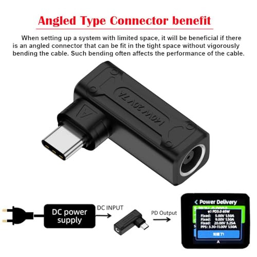 NFHK - مقبس تيار مستمر 140W و100W بمدخل تيار مستمر 7.9 × 5.4 ملم إلى USB نوع سي بزاوية 90° لشاحن الموبايل من NFHK