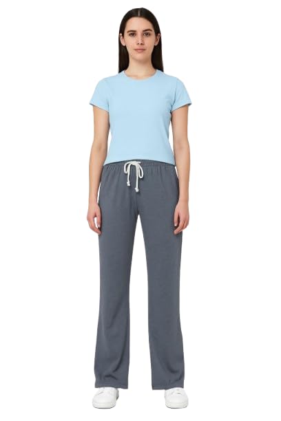 NG - بنطلون رياضي للنساء واسع الأرجل مزود بجيوب وحزام خصر برباط مصنوع من نسيج ثقيل مناسب للنشاطات الرياضية والملابس الكاجوال، من ان جي
