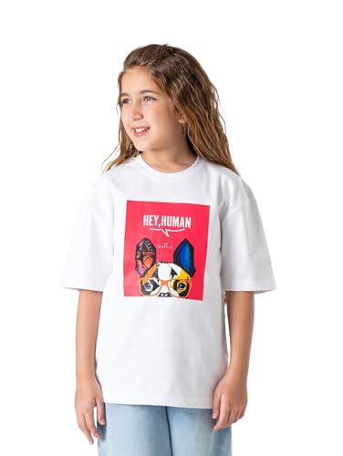 NIÑOS - تي شيرت مطبوع عليه عبارة Hey Human للبنات الكبار من نينوس