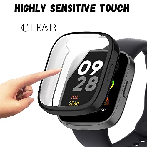 Niboow - جراب [قطعتين] متوافق مع ساعة شاومي ريدمي 3 من نيبو، مع طبقة واقية، جراب حماية رفيع للغاية من البولي يوريثين المقاوم للحرارة، جراب بملمس ناعم - أسود + أسود