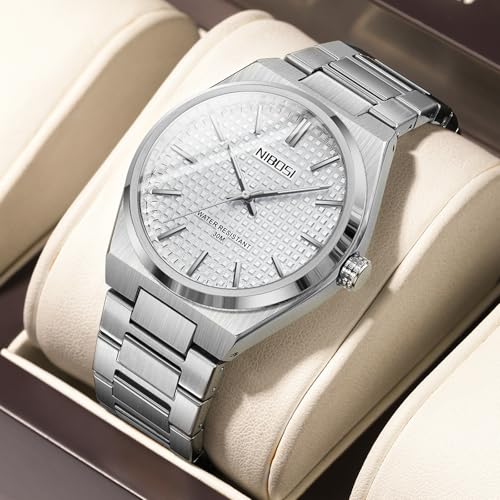 NIBOSI - ساعة يد للرجال - ساعة بحركة كوارتز وسوار من الفولاذ المقاوم للصدأ، مقاومة للماء، بتصميم كلاسيك بسيط وأنيق، مناسبة لملابس العمل الرسمية، ساعات للرجال من نيبوسي