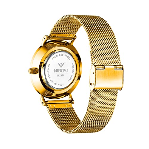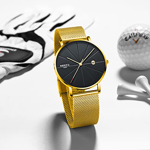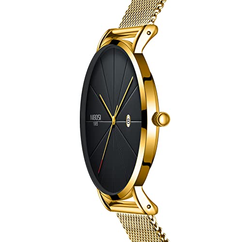 NIBOSI - نيبوسي ساعة انالوج للرجال مينا اسود سوار ملون ذهبي واسود