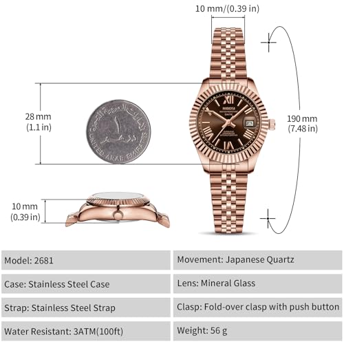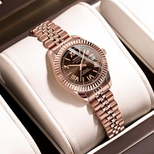 NIBOSI - ساعة يد أنالوج بحركة كوارتز وسوار فولاذ مقاوم للصدأ للنساء مقاومة للماء بتصميم كلاسيكي لعرض التاريخ من نيبوسي