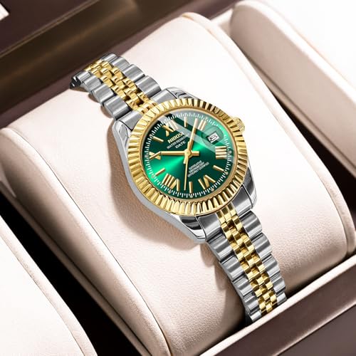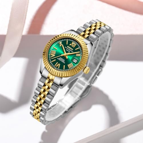 NIBOSI - ساعة أنالوج بعقارب ومينا مربع ذهبي وردي ومرصعة بالماس وأنيقة مقاومة للماء للنساء والبنات والسيدات من نيبوسي