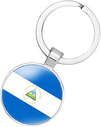 Generic - سلسلة مفاتيح بتصميم علم نيكاراجوا الوطني ثلاثي الألوان، ميدالية بحلقة مفاتيح معدنية فضية تذكارية لمشجعي فريق كرة القدم