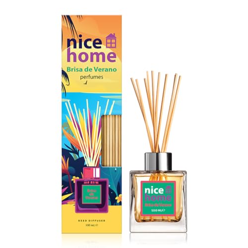 NICE HOME - أعواد عطرية معطرة للجو بريسا دي فيرانو، أعواد فواحة تدوم طويلًا للمنزل برائحة نسيم الصيف من نايس هوم، 50 ملليلتر