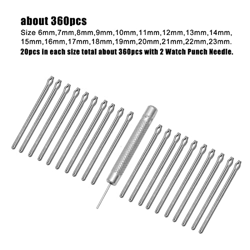 NIBD - خاتم ساعة نايس فطائر حزام زنبركي 6-23 مم من دبابيس الساعة متعددة من الفولاذ المقاوم للصدأ وصانع دبابيس كوتر 360 قطعة, A - دبابيس ربط حزام الساعة، انالوج