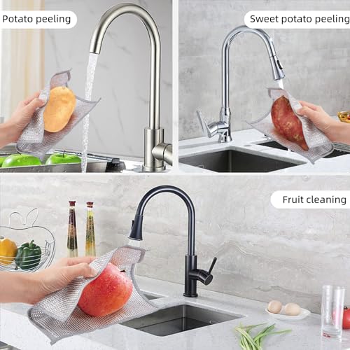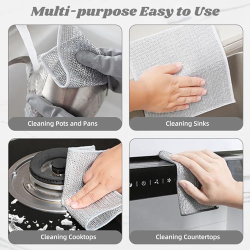 NICENEEDED - نايس نيديد 10 قطع من مناشف غسيل الأطباق السلكية لتنظيف المطبخ منشفة أطباق سلكية الستيل للاستخدام الرطب والجاف متعددة الوظائف غير قابلة للخدش للمطبخ فضي سلك معدني 20x20 سم