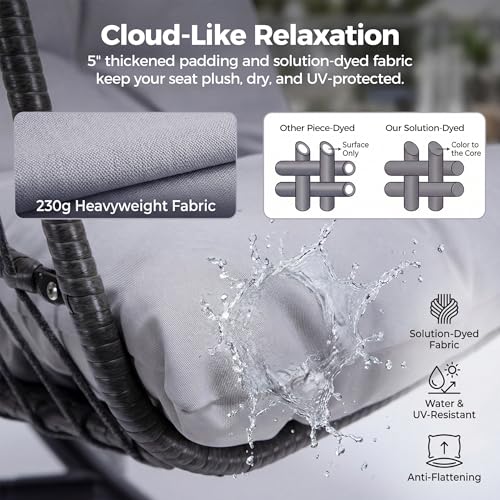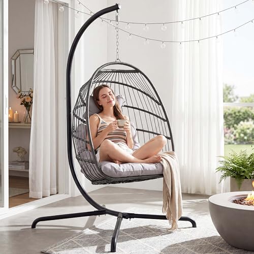 NICESOUL - كرسي أرجوحة معلق على شكل بيضة للاماكن الداخلية والخارجية مع وسائد مقاومة للاشعة فوق البنفسجية بوزن 350 باوند للفناء وغرفة النوم والشرفة من نيسول® (رمادي)