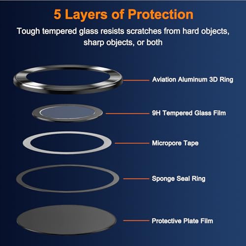 - [مواد عالية الجودة] واقي الكاميرا مصنوع من الزجاج المقوى وخليط معدني من الألومنيوم، مما يوفر متانة وموثوقية ممتازة. تم قصها بدقة لتناسب الكاميرا بشكل مثالي، حماية كاملة لعدسة كاميرا ايفون الخاصة بك من التلف والخدوش.