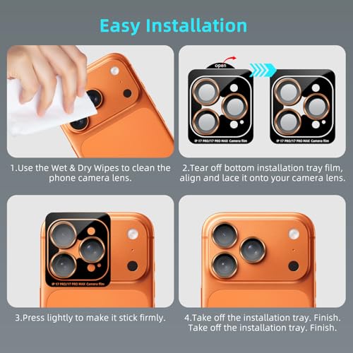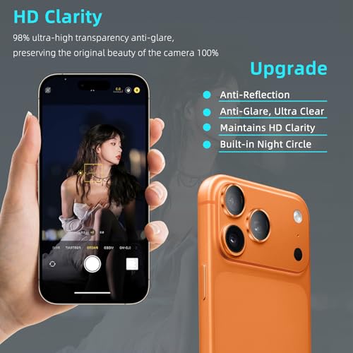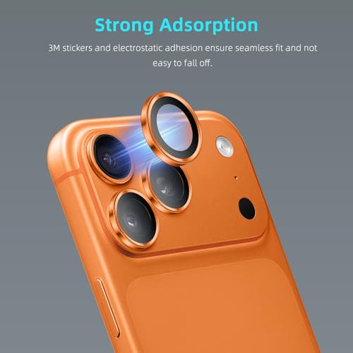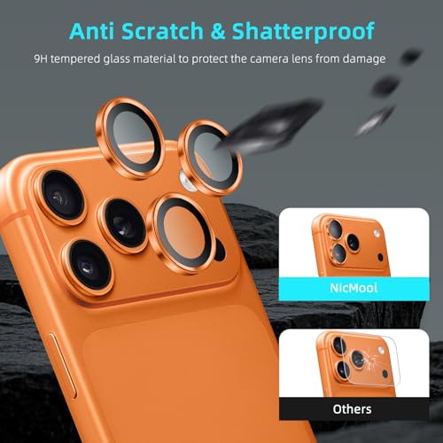 NicMool - غطاء حماية للكاميرا من نيكمول متوافق مع ايفون 17 برو/برو ماكس، عدسة خلفية من الزجاج المقسى، غشاء واقي للكاميرا من خليط معدني من الالومنيوم لموبايل ايفون 17 برو/برو ماكس - برتقالي