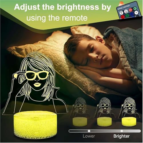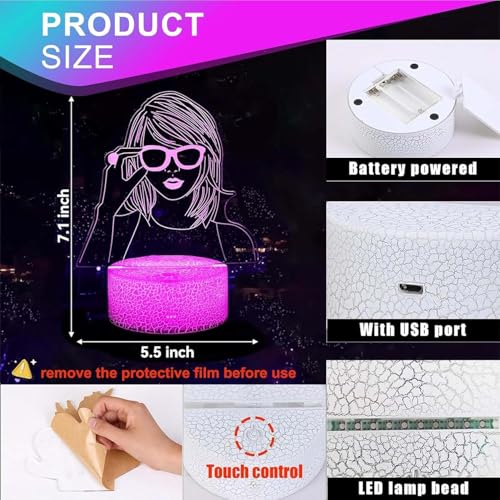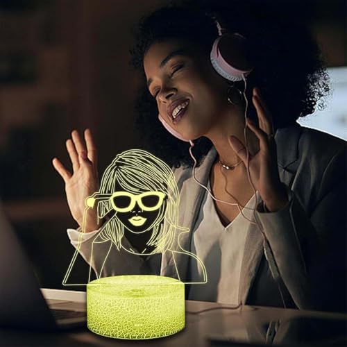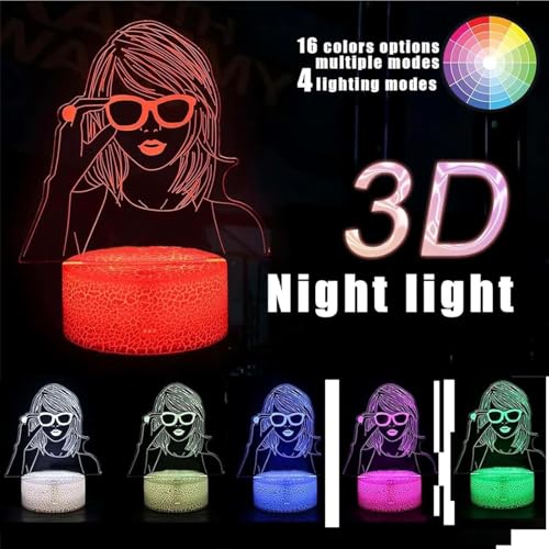 NIEBYI - مصباح ليلي من تايلور وهمي ثلاثي الابعاد يعمل باللمس للاطفال مع جهاز تحكم عن بعد بجانب السرير ليد مكتبي هدايا للبنات ومحبي موسيقى تي اس هدية زينة لحفلات اعياد الميلاد