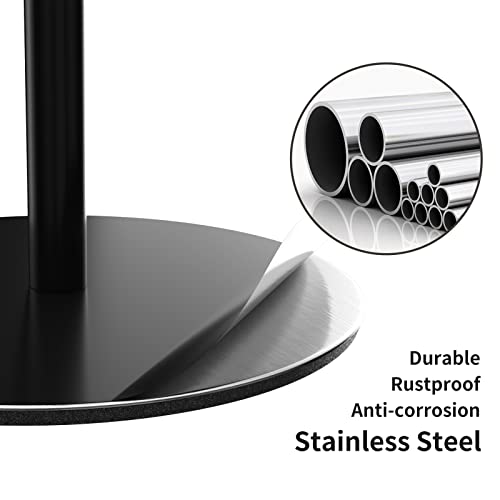 - تصميم قائم بذاته: حامل ورق تواليت قائم بذاته مع قاعدة غير قابلة للانزلاق من أجل الثبات، القاعدة مبطنة بوسائد غير قابلة للانزلاق، ضع حامل بكرة المرحاض في أي مكان دون انزلاق؛