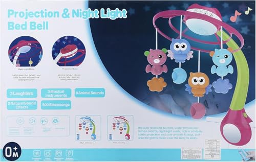 Generic - بروجيكتور بضوء ليلي للسرير مع جرس وريموت كنترول يصدر نغمات للاطفال من الجنسين قابل للدوران - متعدد الالوان - من عمر 0 شهر فاكثر