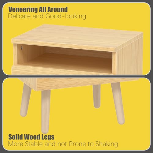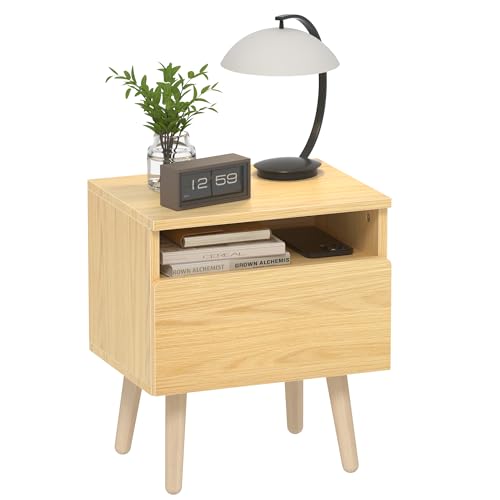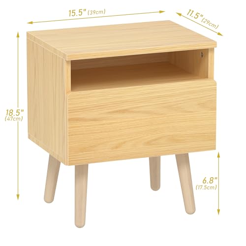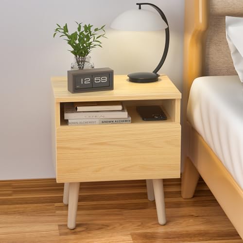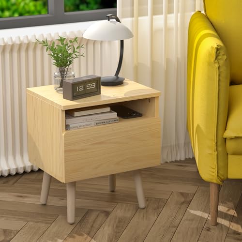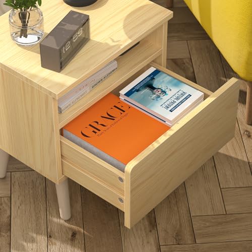 TORVA - طاولة جانبية سرير مزودة بدرج مصنوعة من الخشب تتضمن رف مفتوح للتخزين (1 درج خشبي)