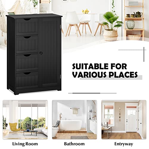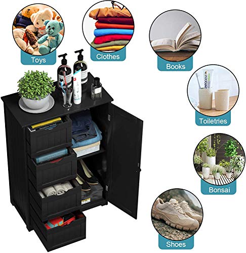 GLACER - خزانة خشبية مع باب واحد و4 قطع، خزانة تخزين لغرفة المعيشة والحمام والمدخل، خزانة أرضية بأدراج من نايت كور، لارج، أسود