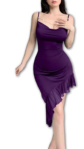 Generic - فستان نوم وفستان عصري للحفلات - ساتان اسود مزدوج الطبقات مع ياقة واشرطة رفيعة وحاشية مزخرفة - من 50 كجم الى 85 كجم - مصمم للنساء الانيقات للمناسبات الخاصة