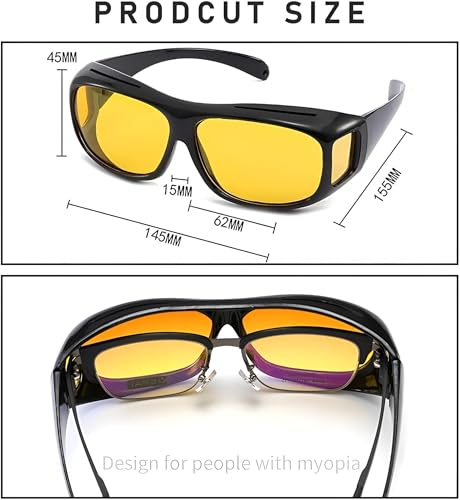 Generic - عدسات نايت اوبتيك - عدسات رؤية ليلية عالية الدقة مع لون اصفر، محسنة للقيادة في الإضاءة المنخفضة وتقليل الوهج والتوافق الواسع بين الجنسين للسفر الآمن بعد حلول الظلام