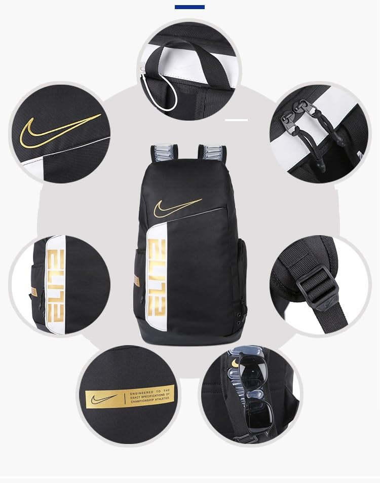 Nike - شنطة ظهر ايليت برو سعة 32 لتر مقاومة للماء وشديدة التحمل للسفر والجيم والكلية والعمل واللاب توب 39.6 سم من نايكي (بلون أبيض)