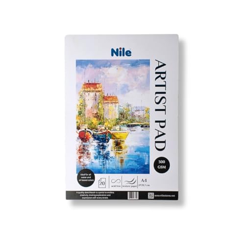 Generic - ورق مقوى A4 من نايل ارت باد - 300 غرام لكل متر مربع - 20 ورقة - خالية من الاحماض - مثالية للالوان المائية والاكريليك والطلاء الزيتي