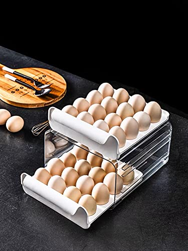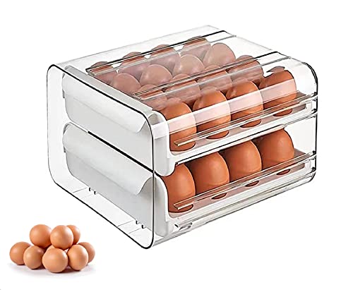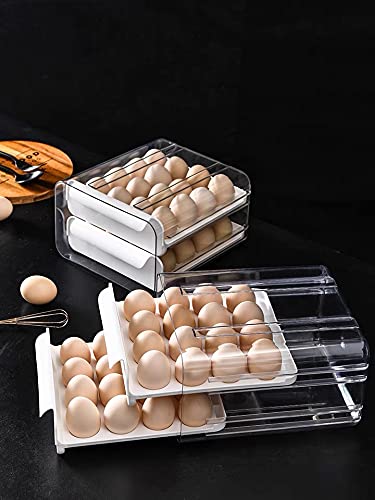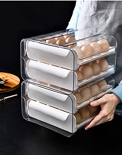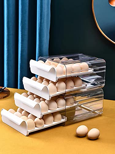 NILICAN - علبة بيض للثلاجة من نيليكان صندوق تخزين البيض شفافة قابلة للتكديس مصنوعة البلاستيك الطازج مع درج - أبيض
