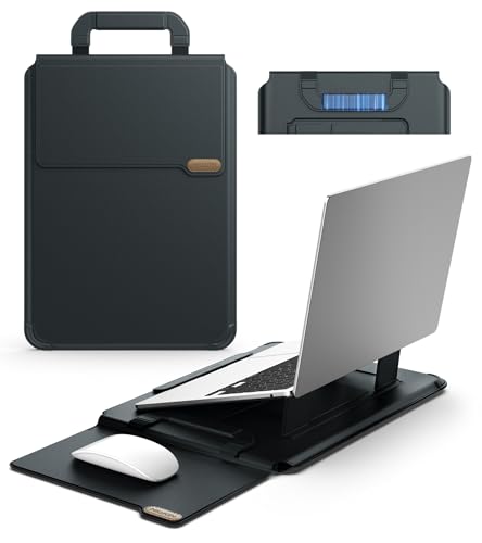 Nillkin - نيلكن حافظة لابتوب 14 انش مع مقبض، حافظة ماك بوك مع حامل قابل للتعديل وقاعدة ماوس، وضعين للحامل، حافظة لابتوب 14 انش، ملحقات ماك بوك رفيعة لسامسونج/سيرفس/كروم بوك 12-14 انش، اسود