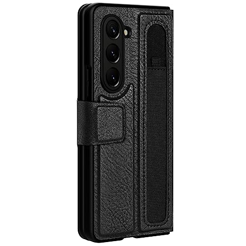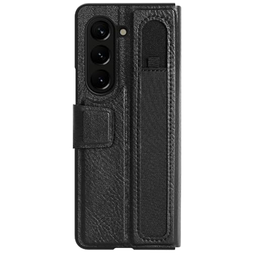 Nillkin - جراب حماية اوجي مصنوع من الجلد (مع حامل قلم) ومصمم لموبايل سامسونج جالاكسي Z فولد 5/W24 من نيلكن - لون أسود