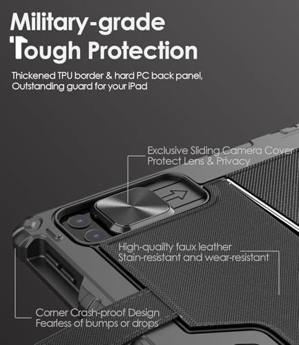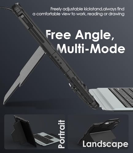 - 【حامل قابل للتعديل بزاوية 180 درجة】استمتع بمرونة لا مثيل لها مع الجراب المزود بلوحة مفاتيح قابلة للإزالة وحامل حصري قابل للتعديل بزاوية 180 درجة. يمكنك بالتبديل بسلاسة بين الوضعين الأفقي والرأسي للحصول على تكيف لا مثيل لها في جميع الظروف، مما يجعله مميزًا عن الجرابات ذات الحوامل الثابتة.