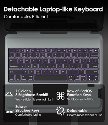 - 【تصميم مريح】جراب مزود بلوحة مفاتيح لجهاز اي باد من نيلكن يتميز بلوحة مفاتيح بإضاءة خلفية نابضة بالحياة مع 7 ألوان و4 مستويات لتعديل السطوع وتوفر كتابة سلسة ليلًا أو نهارًا. توفر تجربة سلسة مع حامل قلم مدمج ووظائف الاستيقاظ والنوم التلقائي.