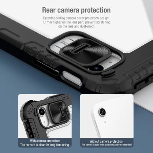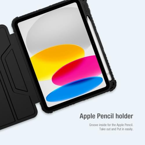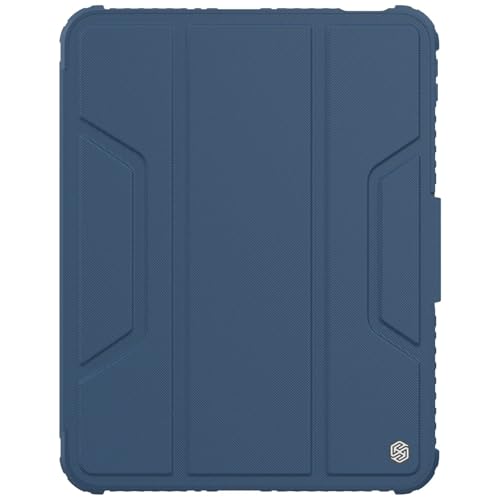 Nillkin - جراب لتابلت ابل ايباد 10.9 بوصة 2022 غطاء جلد بتصميم احترافي مقاوم للصدمات مع كامشيلد منزلق للكاميرا ومسند ذكي بخاصية السكون - اليقظة وحامل للقلم من نيلكين ازرق