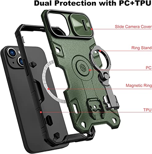 Nillkin - جراب حماية مغناطيسي ارمور برو مع وافي للكاميرا، لايفون، البولي يوريثين الحراري، أسود، لابل ايفون 14/13